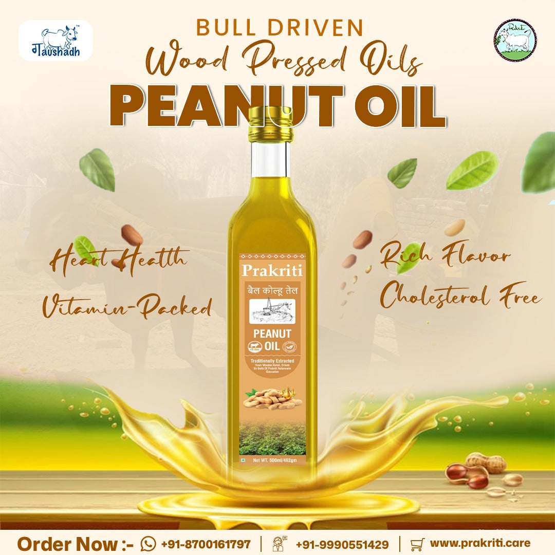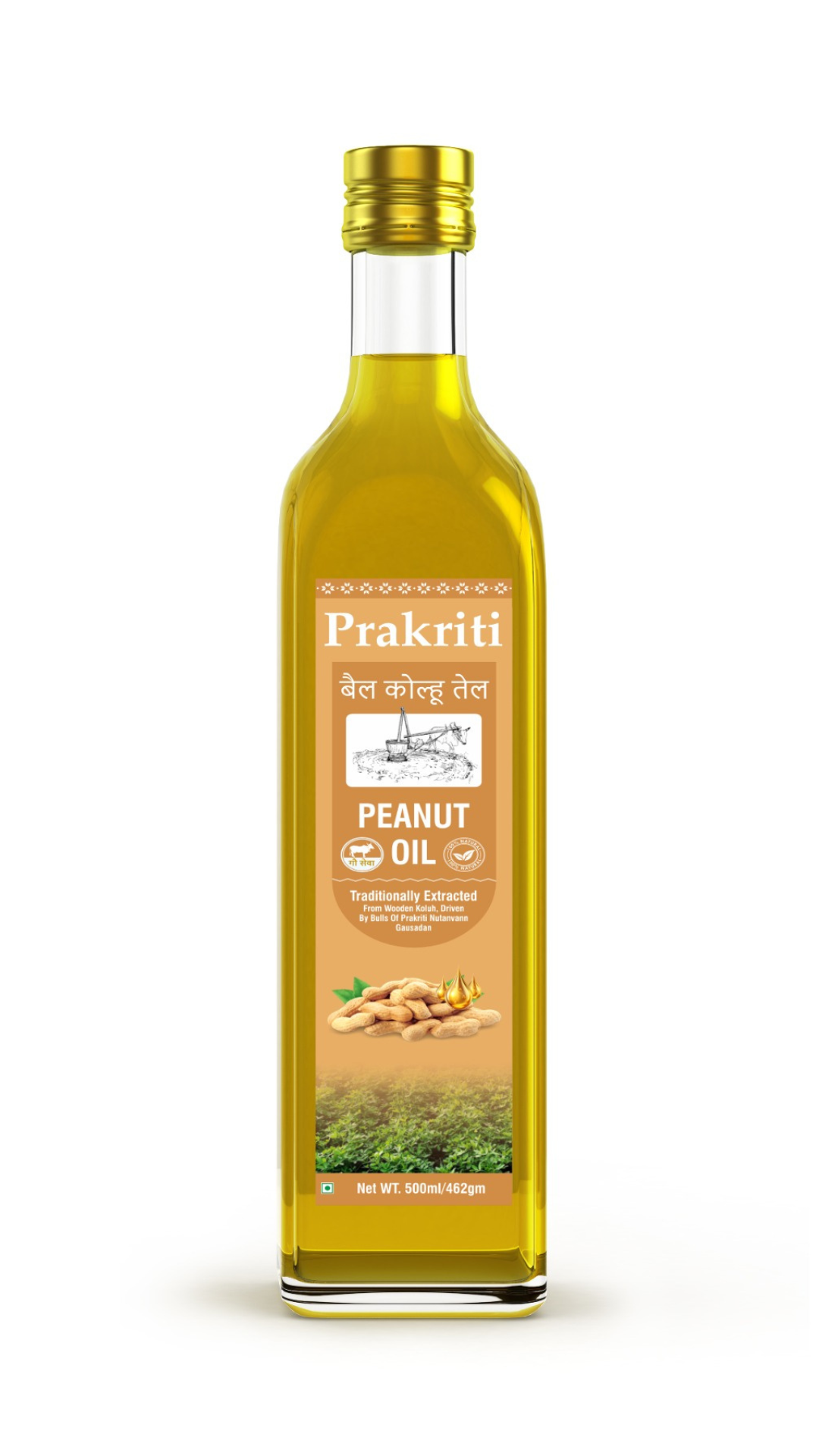 Prakriti Bail koluh Peanut oil is made from good quality peanuts using the traditional bail koluh system made of neem and babul wood.