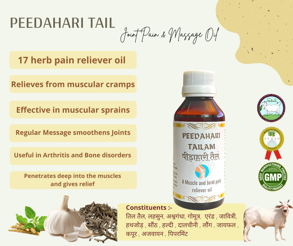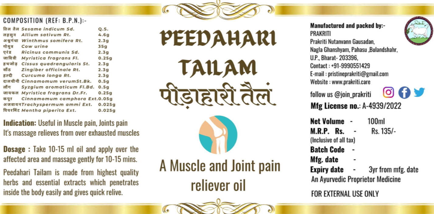 Peedahari Tailam is useful in muscular pain, nervous weakness, swelling, kidney stone pain, and cough (Kaph) in the chest.